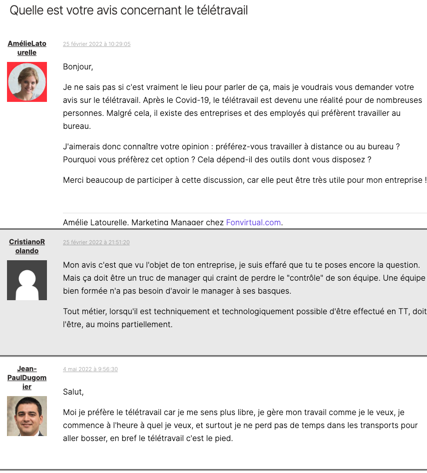 « Quel est votre avis concernant le télétravail ? » La question a été posée par une marketing manager sur un forum « Discussions entreprise » en févirer 2022. Les deux réponses sont clairement en faveur du télétravail.