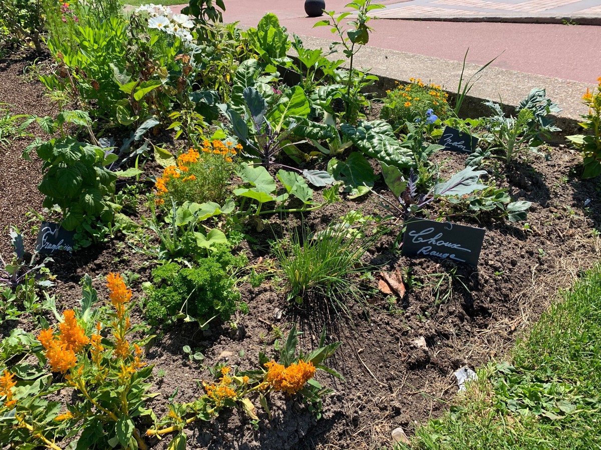 Les services municipaux ont donc planté plus de 3 000 jeunes plantes potagères dans les jardins de l’hôtel de ville. Celles-ci sont toutes issues d’une production locale située à Saint-Léonard, près de Fécamp. Afin de garantir des massifs « esthétiques », des plantes à fleurs (cosmos, eschscholzias, géraniums, lavatères, verveine...) ont été intercalées entre les plantes potagères.