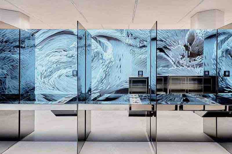 Le seuil des larges portes d’entrées franchies, des mannequins numériques vous accueillent. Pour réduire la sensation d’encombrement dans les allées, les espaces sont vastes, épurés, minimalistes et élégants.
